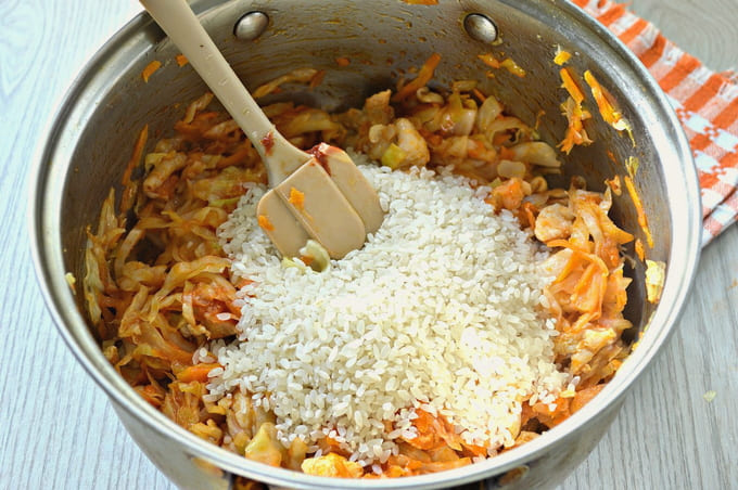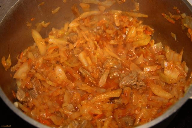 - Stapsgewijs recept voor gestoofde kool met vlees en rijst