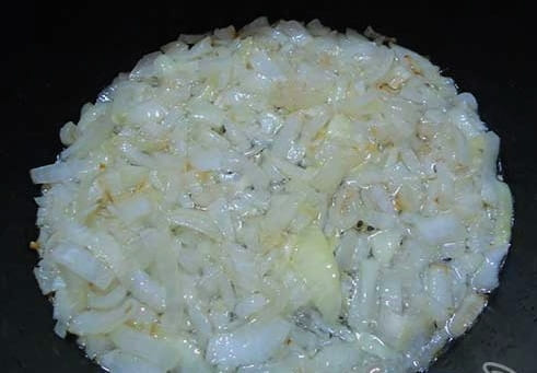 - Giet plantaardige olie in een dikwandige pan met hoge zijkanten in een zodanige hoeveelheid dat deze de bodem bedekt met een laag van drie tot vier millimeter. Giet de gesnipperde ui in goed verwarmde olie. Bak het tot het transparant is.