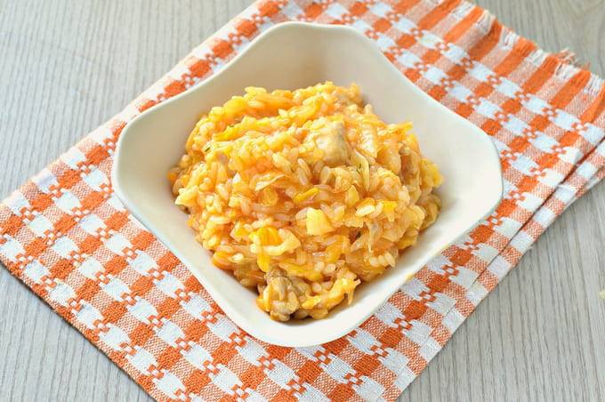 Een uitstekend gerecht met een volwaardige voedingssamenstelling: er zit een vleescomponent in, zowel groenten als granen. Dit betekent dat je na zo'n diner niet lang wilt snacken en bijten, maar tegelijkertijd geen zwaarte in de maag zult hebben. Elk vlees kan worden gebruikt. In dit recept stoven we kool met kip, maar ook varkensvlees, jong rundvlees en mals konijn zijn geschikt. Wat rijst betreft, raden we aan een variëteit met ronde korrels te nemen: dergelijke granen behouden relatieve brosheid en geven geen viscositeit. Dit is een belangrijk pluspunt van dit gerecht. Serveer de gekookte kool met groen voor een frisse smaak en vitamines.