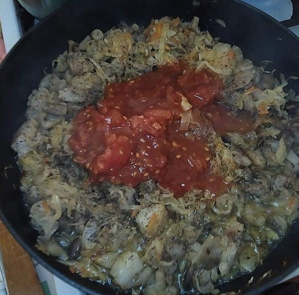 Heerlijke gestoofde kool met vlees en tomatenpuree