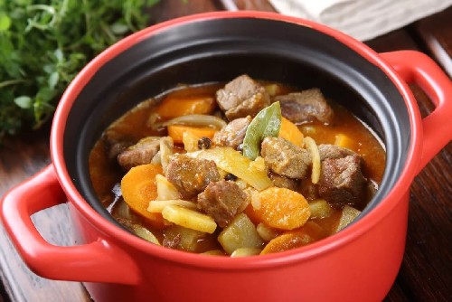 Gestoofde aardappelen met vlees en groenten is een zeer smakelijk en bevredigend gerecht. Doordat er verschillende groenten bij elkaar worden gestoofd, is het vlees goed verzadigd met hun sap en wordt het zeer mals, het smelt gewoon in je mond! Wij raden aan om zo'n culinair meesterwerk te bereiden met de meest verse groenten uit eigen of boerentuin om optimaal van de smaak te genieten!