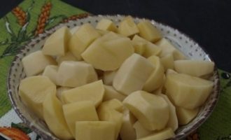 - Snijd de aardappelen in partjes.
