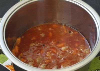 Het advies: als je geen dikwandige pan hebt, kook dit gerecht dan in een ketel. Daarnaast kun je alle ingrediënten eerst in een diepe koekenpan bakken en daarna in een gewone pan gaar sudderen.