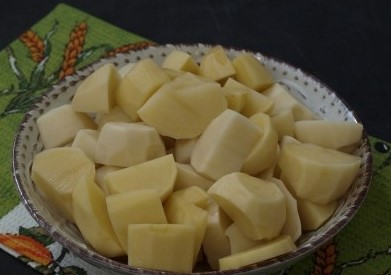 - Snijd de aardappelen in partjes.
