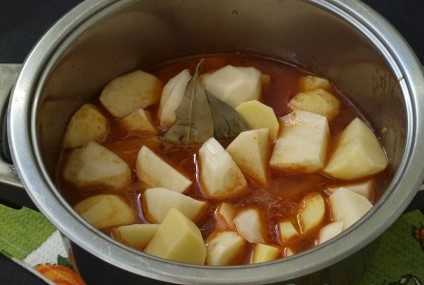 - Sudderen in een dikwandige pan of ketel, afgedekt op laag vuur. Vergeet niet om een kleine hoeveelheid kokend water toe te voegen en af en toe te roeren.