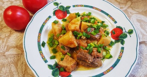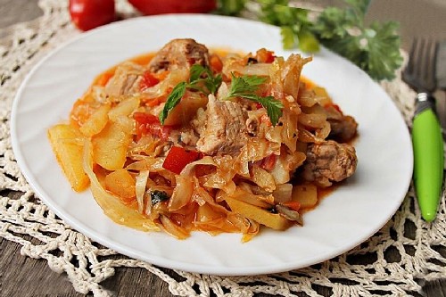 - Stapsgewijs recept voor gestoofde aardappelen met vlees en kool