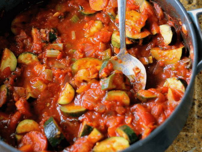 - Een eenvoudig en lekker recept voor groente-courgettestoofpot met tomaten