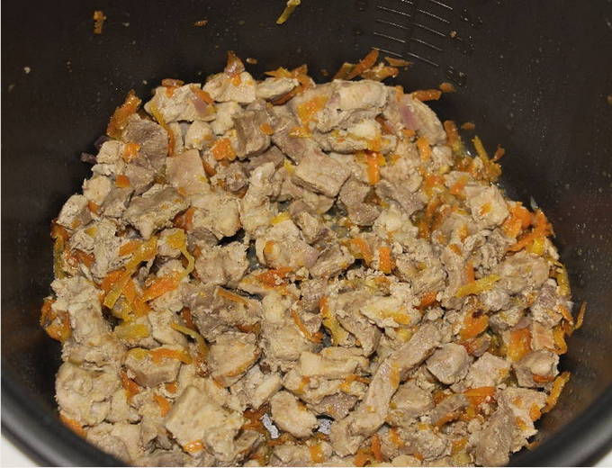 - We verschuiven rijst naar groenten, mengen de ingrediënten tot een gladde massa. Vul 100 ml water in. Laat een mengsel van groenten en rijst 10 minuten sudderen.