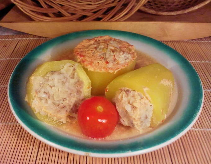 - Drijf een ei in een kom gehakt, verdeel de rijst. Zout en peper de massa naar smaak.