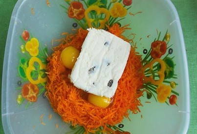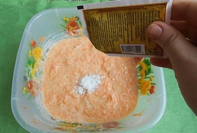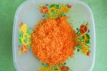 - We maken de wortels schoon en wrijven ze op een fijne rasp. We sturen het product naar een diep bord.
