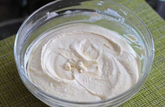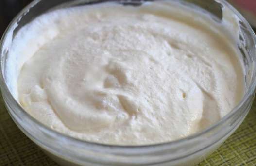 - We malen de kwark en leggen deze in een diep bord. Scheid de eiwitten van de dooiers. Doe de dooiers, suiker en zure room bij de kwark.