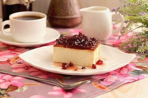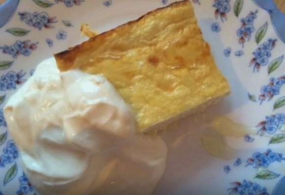 Luchtige wrongelbraadpan zoals in een kleuterschool is gemakkelijk om thuis te koken. Het dessert is mals en matig zoet. Serveer het bij je ontbijt of thee.