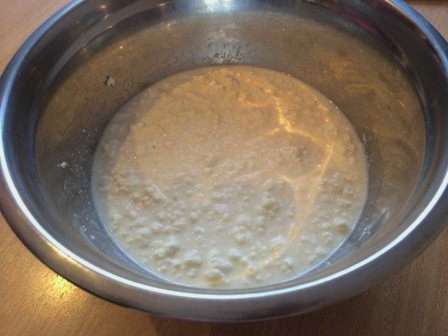 - We laten het resulterende wrongelmengsel een tijdje opzij zodat het graan de tijd heeft om te zwellen.