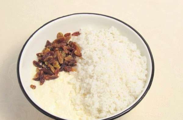 - Kook de rijst en doe deze bij de wrongelmassa. We sturen hier ook rozijnen naar smaak. Meng opnieuw.