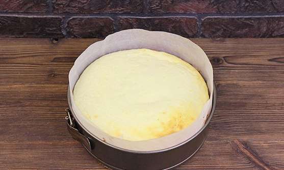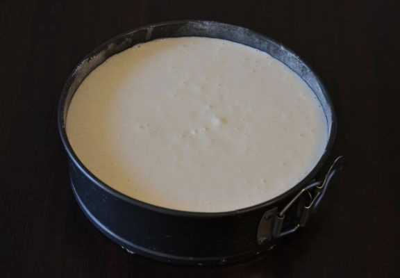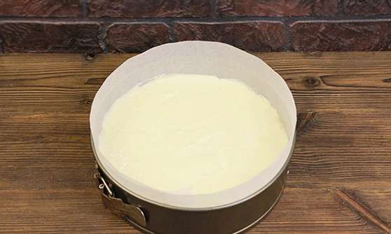 - We verspreiden de massa in de voorbereide vorm. Egaliseer het oppervlak met een spatel. We zetten 45 minuten in de oven op een temperatuur van 190 graden.
