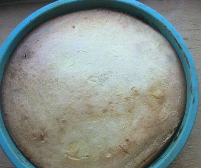 - Bedek de multicookerkom met plantaardige olie. We verspreiden hier ook het afgewerkte deeg. We zetten de "bakmodus" gedurende 45 minuten aan.