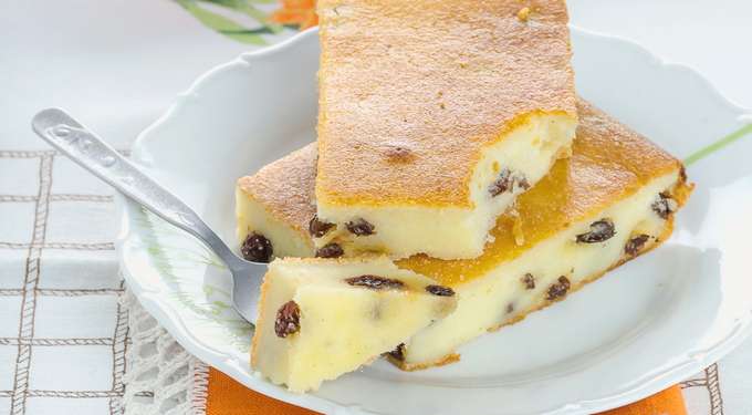 Weelderige en luchtige wrongelovenschotel met rozijnen in de oven