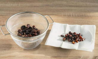 - Week de rozijnen vooraf in koud water en laat ze drogen.