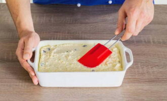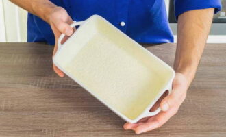 Bedek de ovenschaal met een klein beetje boter en bestrooi met de rest van het griesmeel.