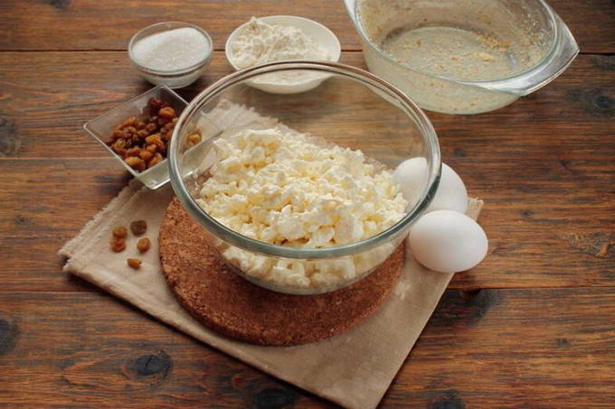 Je kunt snel en eenvoudig een wrongelovenschotel met rozijnen bereiden zonder griesmeel toe te voegen. Zo'n traktatie blijkt erg mals en luchtig te zijn. Serveer het dessert met een warme kop thee.