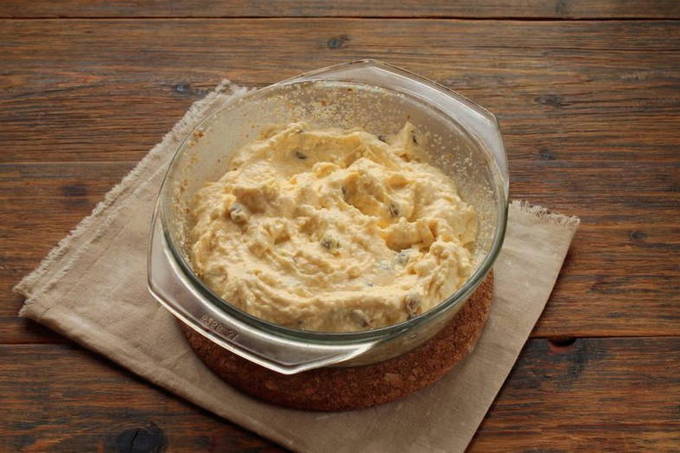 - Weelderige curd ovenschotel met rozijnen en gedroogde abrikozen