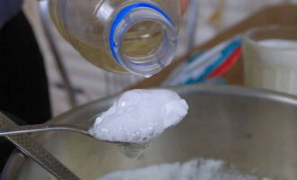 - Zout en bakpoeder worden aan de wrongel toegevoegd en vervolgens vanilline.