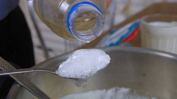 Frisdrank wordt geblust met azijn en toegevoegd aan het wrongeldeeg.