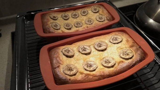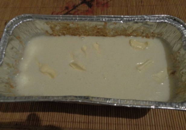 - Verspreid in een diepe ovenschaal, ingevet met olie, de massa kwark, verdeel de plakjes banaan erover.