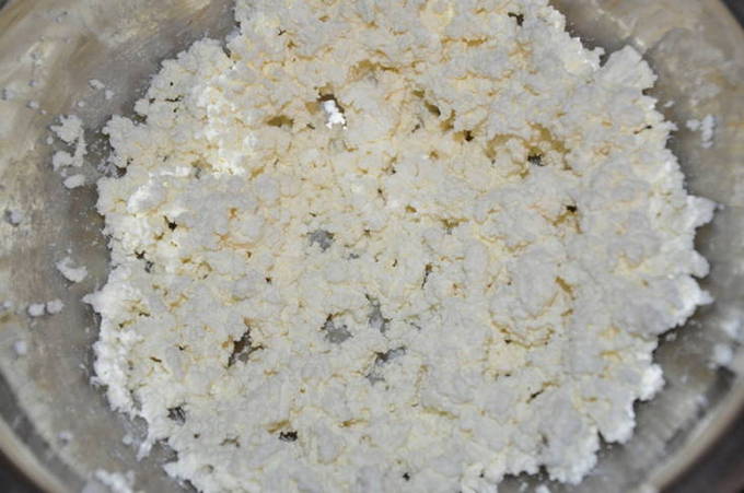 - Het is beter om kwark vetter te kiezen, zodat de braadpan lekkerder en niet droog blijkt te zijn. Het moet met een vork worden gekneed, zodat het een kruimelige consistentie krijgt.