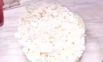 - Als het wrongelmengsel klaar is, giet je de vanilline erin en voeg je voorzichtig het zetmeel toe. Het deeg moet zorgvuldig en kwalitatief worden gemengd, zodat het zetmeel gelijkmatig wordt verdeeld.