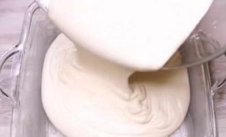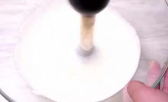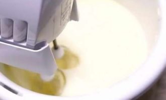 Nadat de wrongelmassa volledig homogeen is geworden, moet deze met een mixer worden opgeklopt tot hij luchtig en luchtig is.