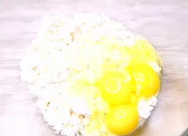 - Klop in een aparte kom eieren en kristalsuiker tot ze luchtig zijn.