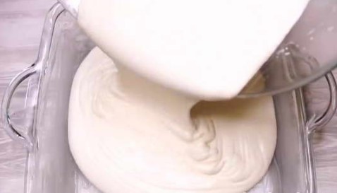 Nadat de wrongelmassa volledig homogeen is geworden, moet deze met een mixer worden opgeklopt tot hij luchtig en luchtig is.