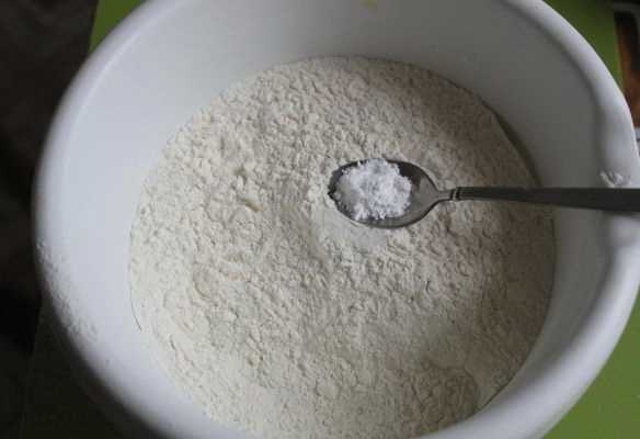 - Zeef de bloem in een diepe kom door een fijne zeef. Voeg er zout en bakpoeder aan toe. Meng voorzichtig.