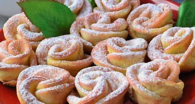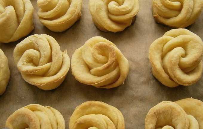 Zelfgemaakte kwarkkoekjes "rozen" zijn uniek in hun aangename delicate smaak, evenals hun originele uiterlijk. Verwen uzelf en uw dierbaren met een heerlijke traktatie.