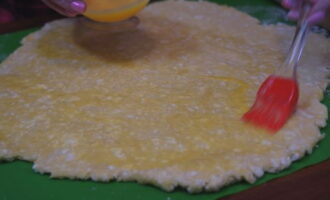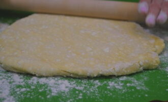 - Haal het deeg uit de koelkast en leg de helft in een ovenschaal. We verdelen het product tot een dunne laag.