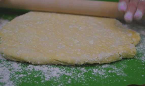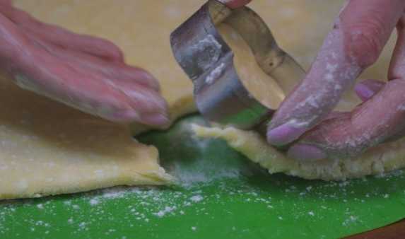 - Rol het deeg na de koelkast uit tot een dunne laag en steek er middelgrote cirkels uit.