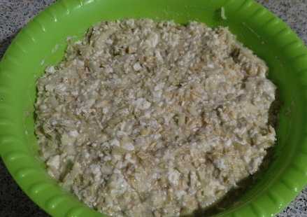 - We verspreiden de gezwollen havermout over de totale massa.Roer het deeg tot een glad mengsel en zet het 1 uur in de koelkast.