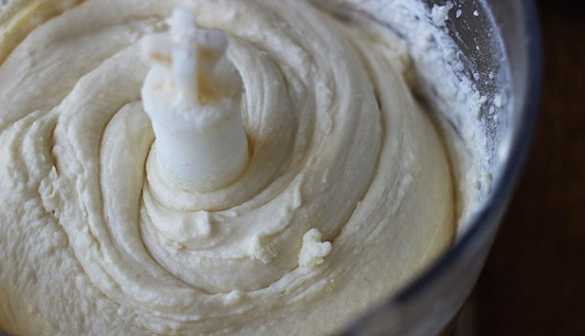 - Doe de kwark in een diep bord, voeg een snufje zout toe en maal het product fijn met een lepel.
