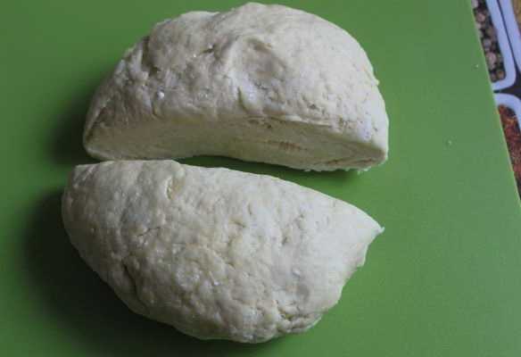 - Nadat het deeg is "rust", verdelen we het voor het gemak in twee gelijke delen.