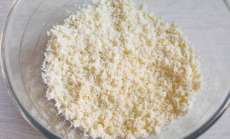 - Wrijf de kwark door een zeef of pons hem met een blender. Voeg het toe aan de boter, suiker en eieren. Voeg een snufje zout toe, voeg citroenschil, vanille-extract toe en mix alles met een mixer.