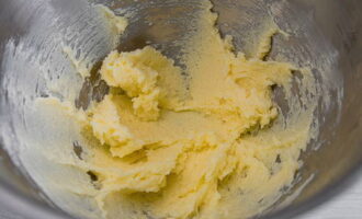 Klop in een aparte kom de boter samen met de suiker tot een homogene crèmeachtige consistentie.