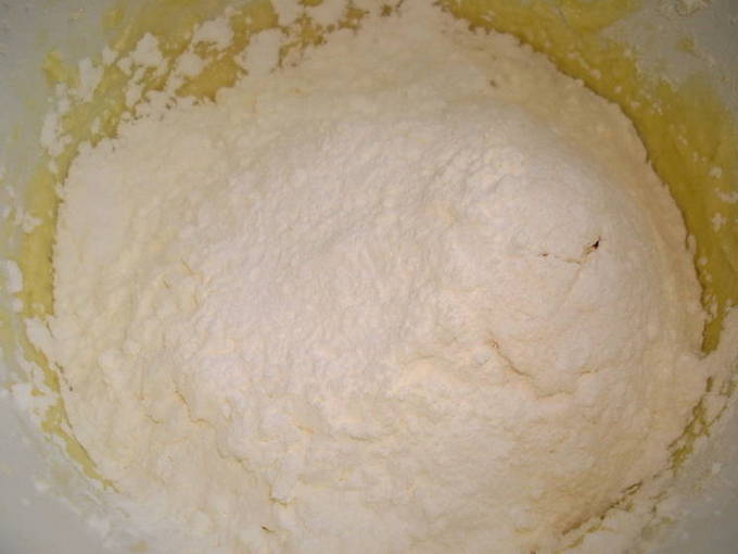 - Zeef bloem met bakpoeder door een zeef. Voeg vanilline toe en roer alles goed door elkaar met een lepel.