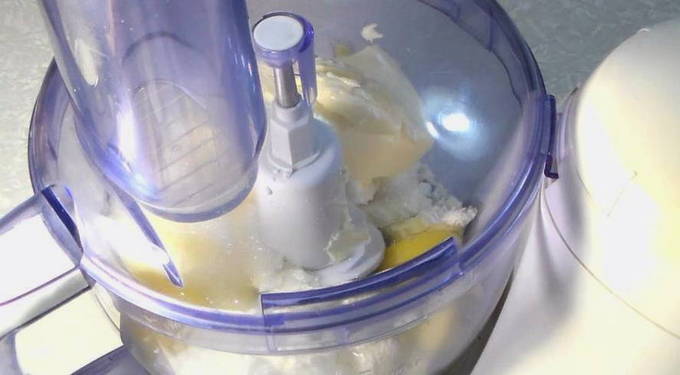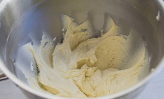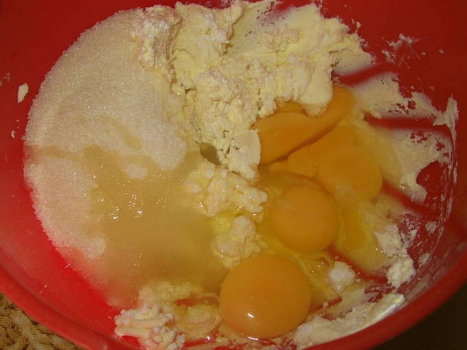 - We doen de zachte boter, suiker, eieren en kwark in een blender en kloppen op lage snelheid, geleidelijk verhogend.