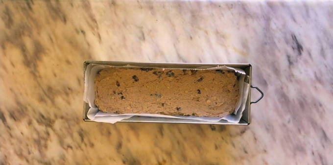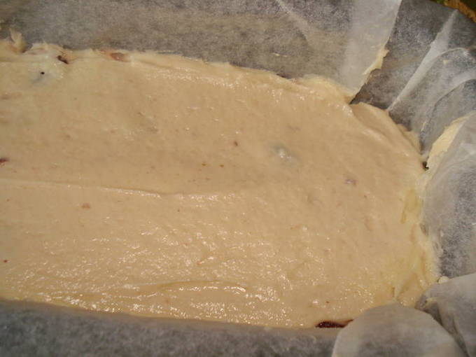 - Doe het bakpapier in de vorm en giet het deeg erin.