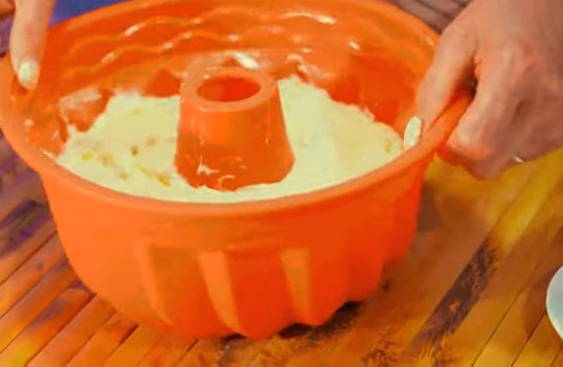 - Vet de cakevorm in met plantaardige olie en giet het deeg erin. Laat het 15-20 minuten staan. Verwarm de oven voor op 175OC en zet het formulier erin. We bakken ongeveer een uur.