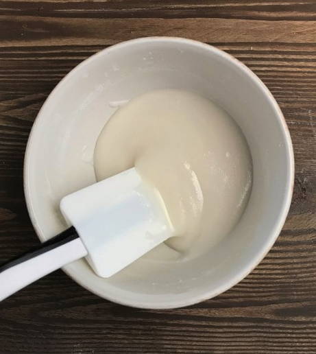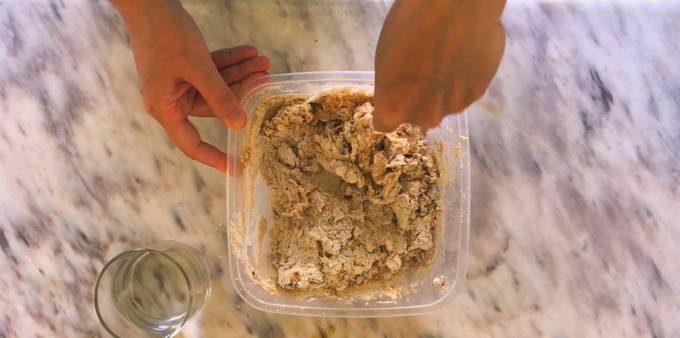 - Omdat het mengsel droog genoeg is, voeg je er water aan toe en mix je het tot een glad mengsel.