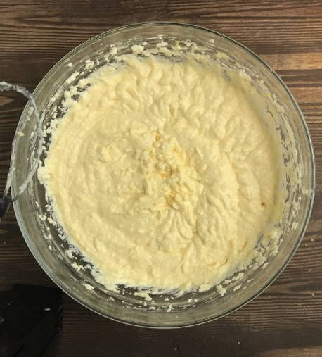 - Voeg het kwarkmengsel toe aan de boter en klop alles met een mixer tot een glad beslag.