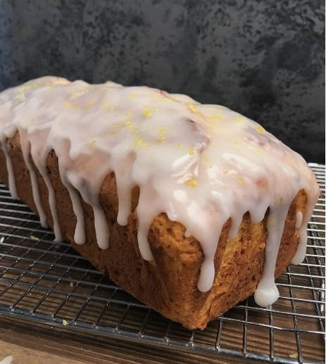 - Giet de afgekoelde cake met kant-en-klaar glazuur en versier met citroenschil. Eet smakelijk!