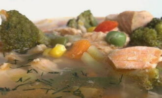 Nogal een budget, maar niet minder smakelijke optie voor het koken van forelvissoep. Bovendien verkort u de kooktijd merkbaar door het gebruik van een in de handel verkrijgbare “Mexicaanse” groentemix. Dergelijke vissoep kan gemakkelijk en snel thuis worden gekookt, maar tegelijkertijd blijft de smaak van de vissoep het meest klassiek.